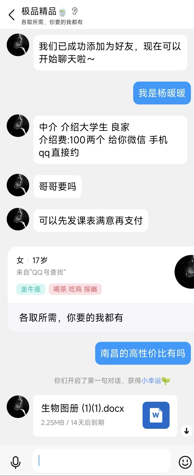 这是朋友推荐的一个中介了 价挺实惠基本上都能找到满意的 相较于自己找一个相对满意的还是这个中介找的快 过多就不赘述了希望各位狼友都能找到自己的春天